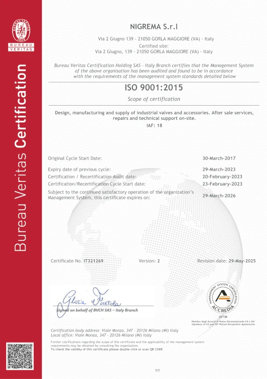 All of our proposed solutions are always in full compliance with the International Standards and the End Users Specifications. Nigrema has a Quality Management System according to the requirement of ISO 9001-2015 and products specification according to ATEX, PED and FIRE SAFE.